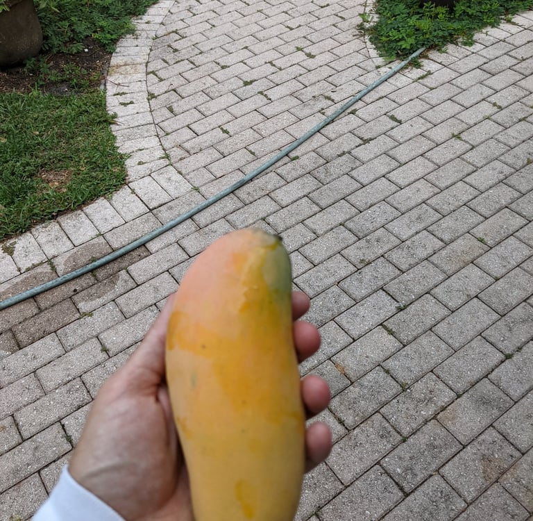 A gorgeous yellow & sometimes pink, oblong Thai mango. It has a nice sweet floral flavor that has an extra twang compared to a Nam Doc. OG forum members have described the Maha as sometimes having a soda-pop or fizzy aftertaste, which I agree with.