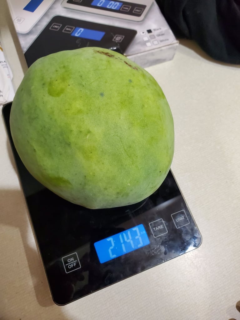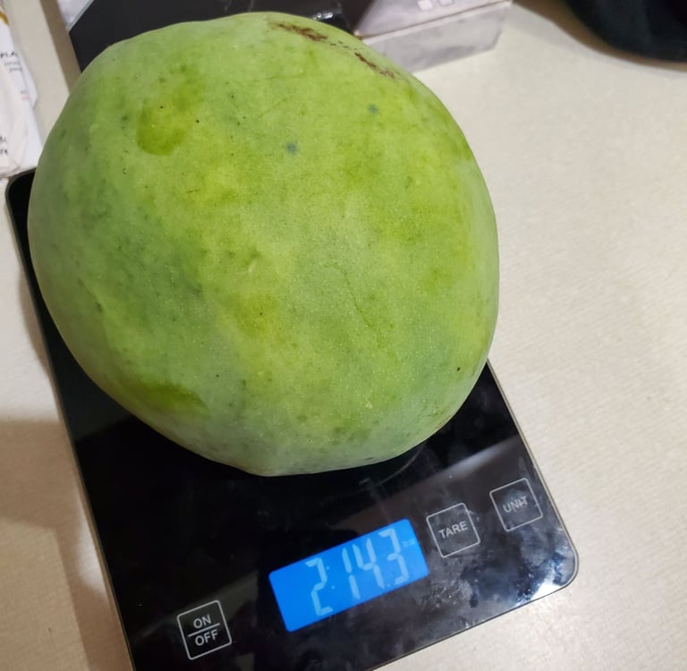 A baseball or even softball sized mango that is sweet, fiber free and possesses the distinct ZINC (Zill Indochinese) mango taste. It's a difficult flavor profile to describe that can be tasted in other ZINC offspring like Sweet Tart, Kathy and Cecilove. It's sometimes described as being chalky, but that doesn't sound appetizing and it's truly an awesome mango.